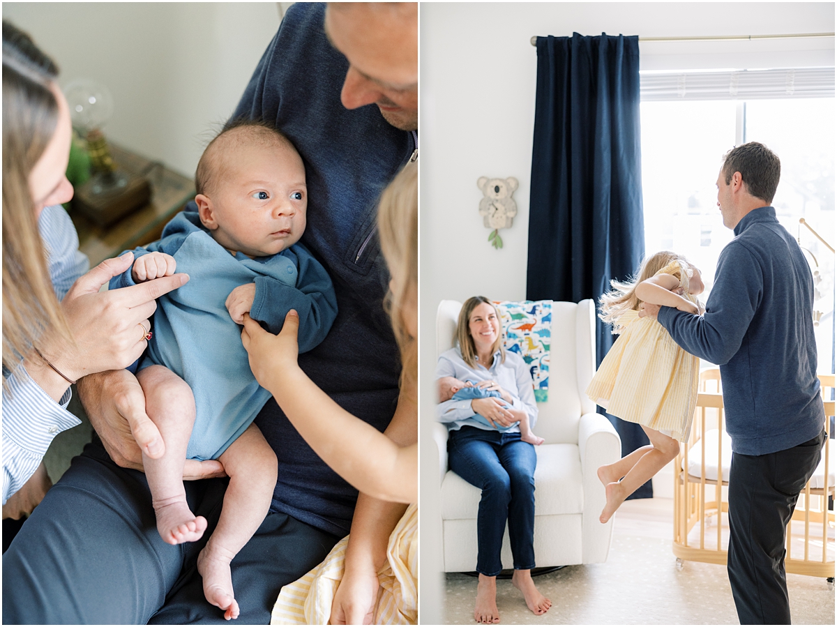 When I photograph firstborns, I know the session will most likely feel calm and peaceful (like it was for Olivia’s newborn session three years ago!). However, when I’m coming in to celebrate a newborn session with a new brother or sister, it’s often the opposite! This is where my three-boy-mom / former teacher / wedding photographer hats fit right in place! :)